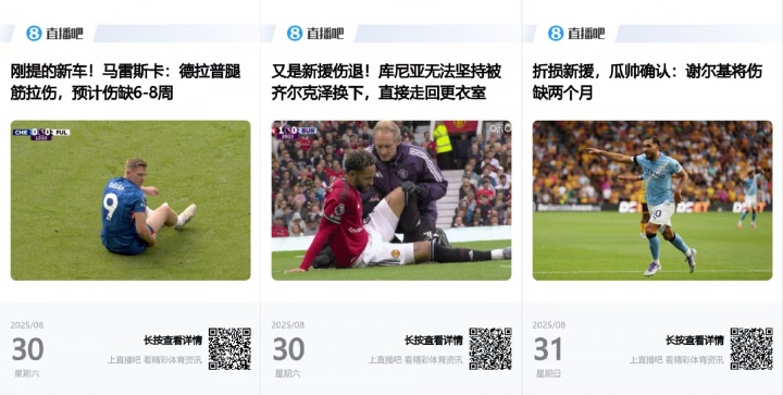 无论战绩如何,本轮联赛似乎都并不能让车&魔&城迷们完全满意:切尔西和曼联本轮联赛中均有新援伤退,曼城新援谢尔基更是在本轮开始前就遭到大腿伤情缺阵。